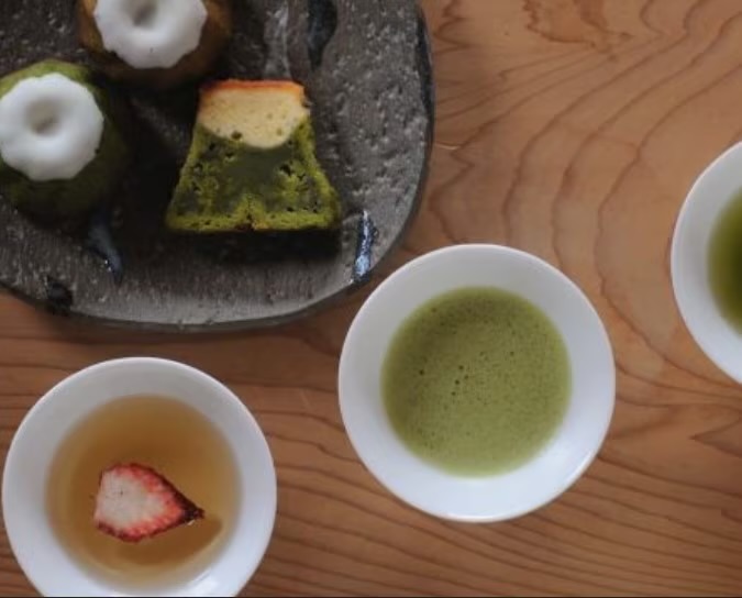 「静岡茶」と「自社工房で作られた抹茶スイーツ」の販売、2階のイートインでは、10種類の